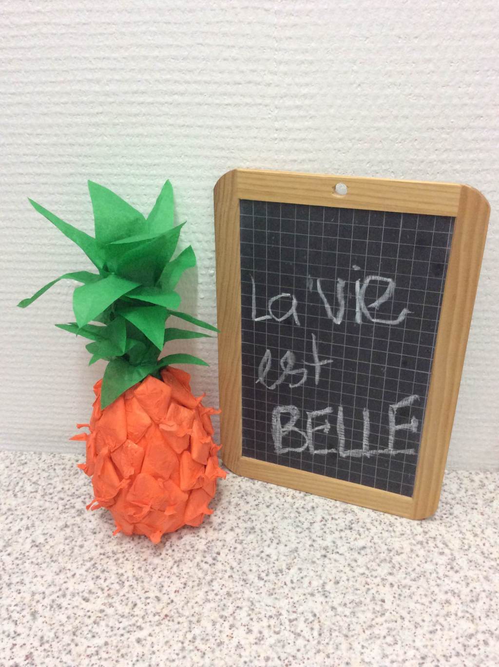 Aujourd’hui, nous faisons ensemble une décoration lumineuse pour la cuisine ou la chambre des enfants – un ananas en papier de soie.