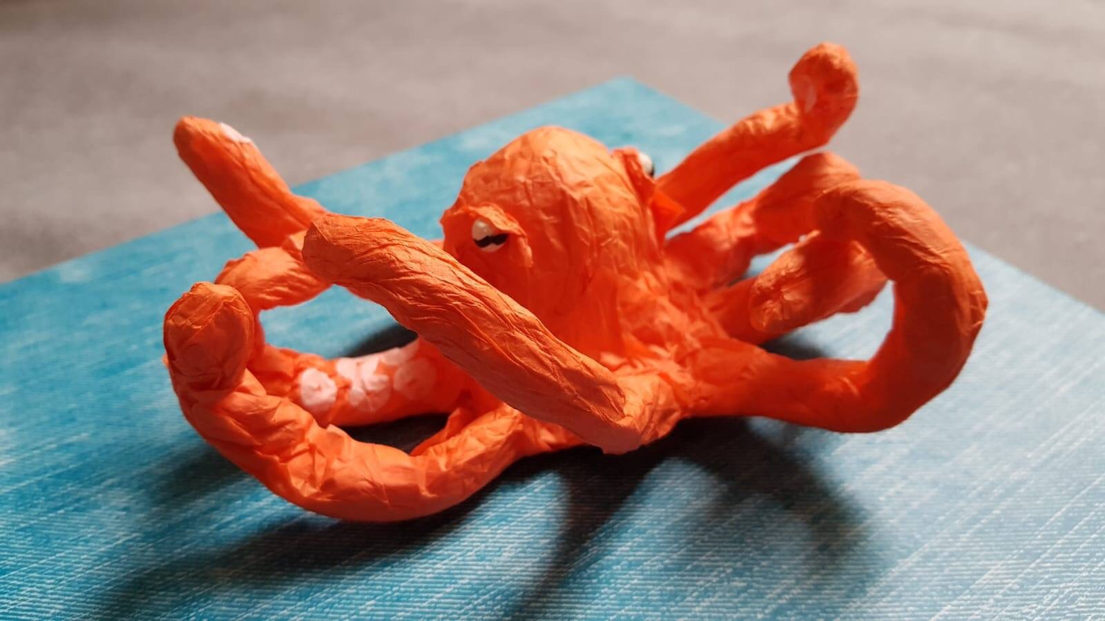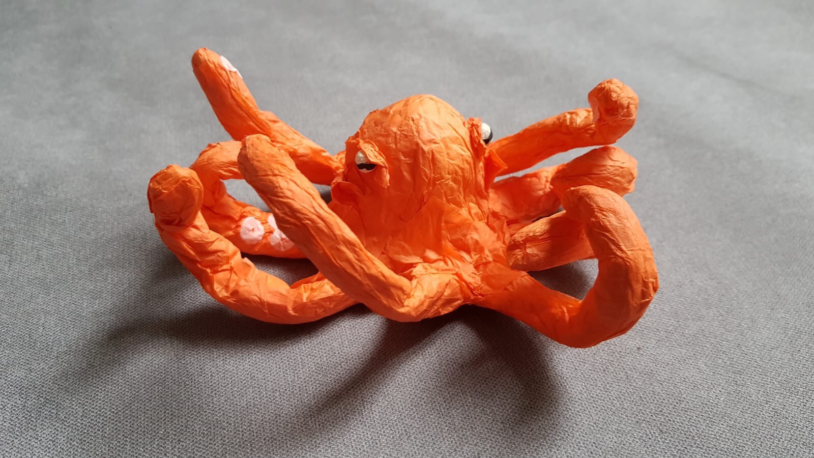 J-9 Aujourd’hui je vous présente un poulpe, fait en papier de soie avec beaucoup de plaisir…