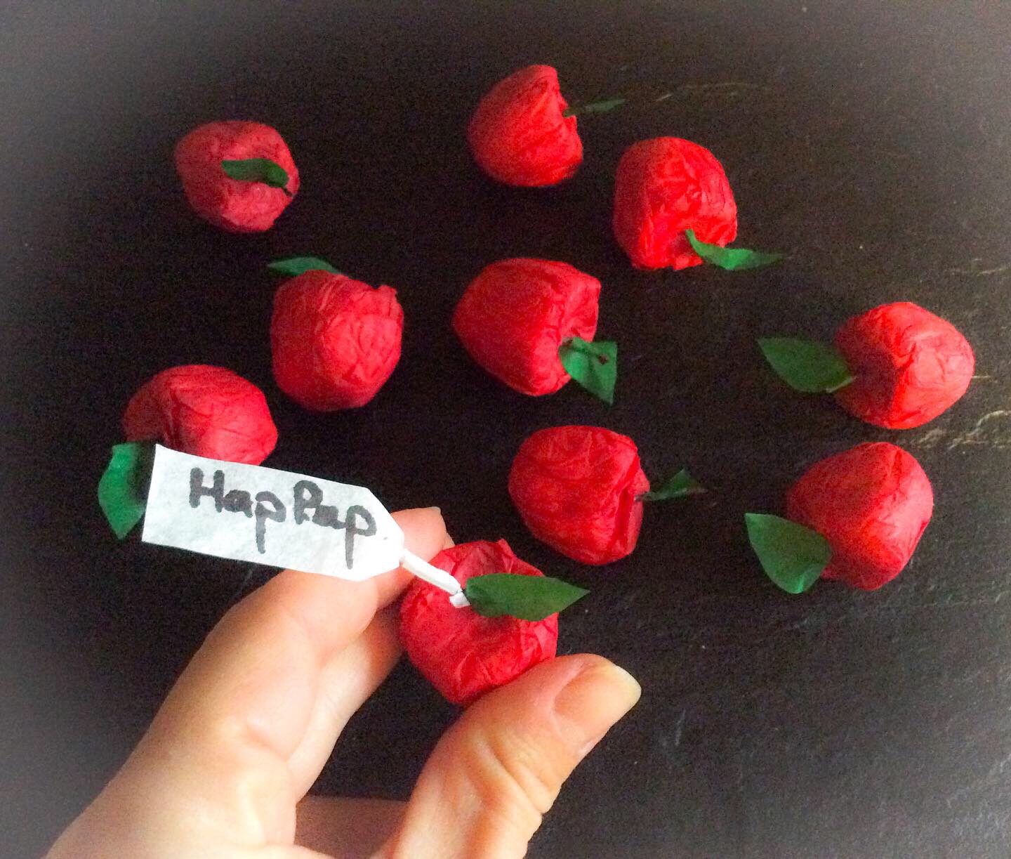 J-19 et Aujourd’hui j’ai fait mes cartes de visite en forme de pommes en papier de soie 🙂🙃