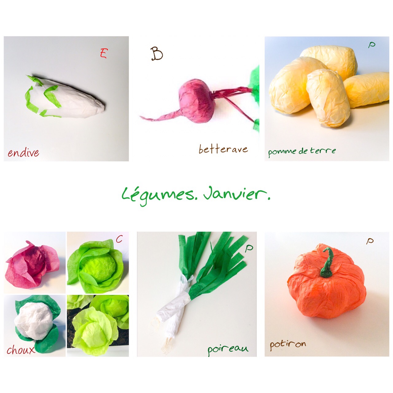Calendrier des Fruits et Légumes . Janvier.