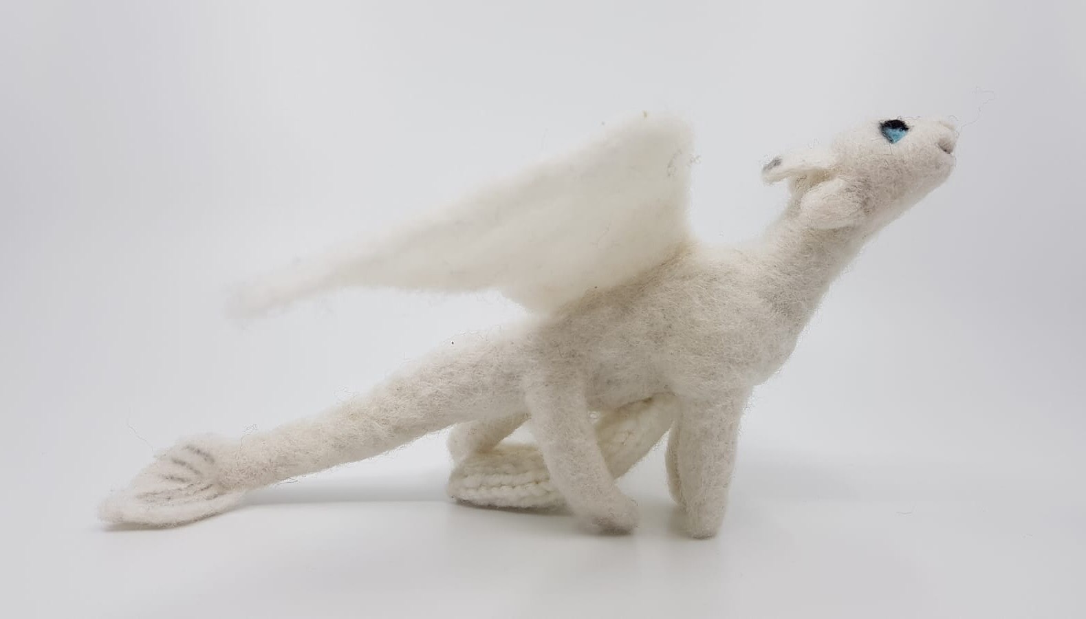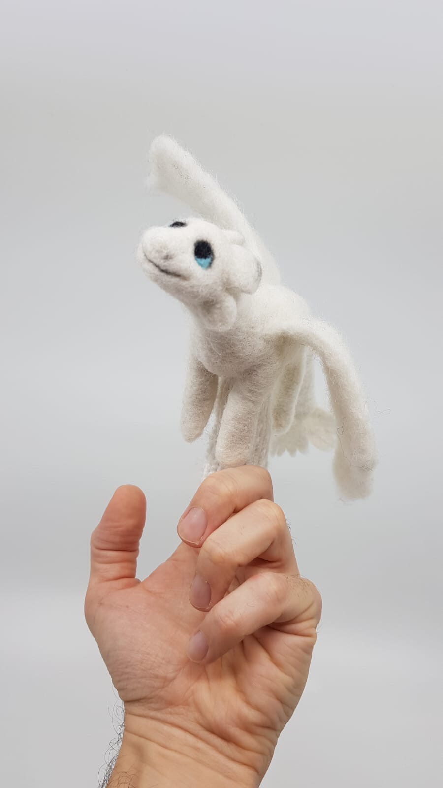This finger wool puppet white dragon was made for one little girl in France. If you want to make a speacial gift – connect us by omikse.com@gmail.com
